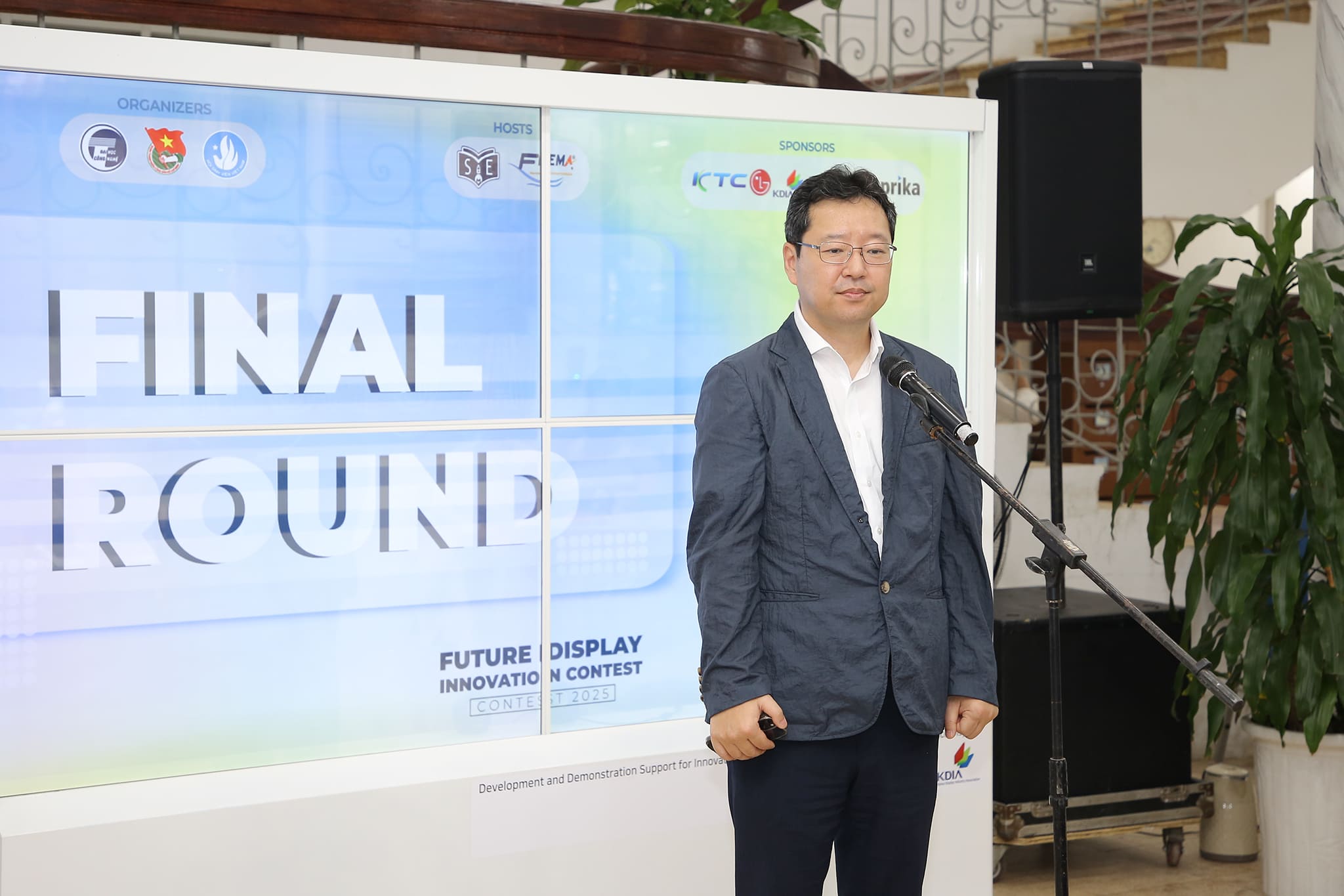 Phó Hiệu trưởng cũng nhấn mạnh mối quan hệ hợp tác bền chặt giữa Trường ĐH Công nghệ và các doanh nghiệp Hàn Quốc như LG Display, KETI, KTC, Paprika Story và Hiệp hội Công nghiệp Hiển thị Hàn Quốc, coi đây là minh chứng cho tinh thần “Cùng kiến tạo tương lai” giữa Việt Nam và Hàn Quốc trong lĩnh vực công nghệ hiển thị.
