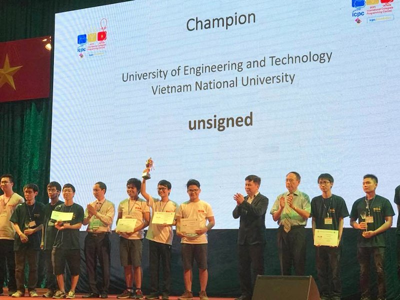 b) Bốn năm liên tiếp Trường ĐHCN có đội tuyển đạt giải cao ở kỳ thi Lập trình sinh viên quốc tế ACM/ICPC khu vực châu Á và tham dự Vòng chung kết toàn cầu. Năm 2017, đội tuyển LINUX (gồm ba thành viên Phạm Văn Hạnh, Nguyễn Đức Duy và Phan Đức Nhật Minh) đạt giải nhất ACM/ICPC khu vực châu Á, tham dự vòng chung kết toàn cầu tổ chức tại Mỹ giành thứ hạng 34/128 đội tuyển tham dự. Trong vòng loại khu vực châu Á, điểm thi Thành phố Hồ Chí Minh diễn ra từ ngày 5-8/12/2017, đội tuyển Unsigned đã giành ngôi vô địch và sẽ có mặt tại vòng chung kết toàn cầu kỳ thi ACM/ICPC tổ chức tại Bắc Kinh vào tháng 4/2018. Năm 2016, đội tuyển BYTE (gồm 3 thành viên Phạm Văn Hạnh, Đỗ Ngọc Khánh và Nguyễn Tiến Trung Kiên) vô địch ACM/ICPC khu vực Châu Á điểm thi Hà Nội và rank 2 tại BangKok đã được chọn tham gia Vòng chung kết toàn cầu vàđã giành vị trí thứ 29 (là thứ hạng cao nhất của các đội tuyển Việt Nam từ trước đến nay) và đưa Việt Nam vào quốc gia có vị trí thứ 14 tại cuộc thi ACM/ICPC 2016.Năm 2015, đội tuyển Java# (ba thành viên là Nguyễn Đức Nam, Nguyễn Phan Quang Minh và Đỗ Xuân Việt) đại diện duy nhất của Việt Nam tham gia Vòng chung kết toàn cầu kỳ thi Lập trình sinh viên quốc tế toàn cầu ACM/ICPC 2015 đã giành thứ hạng 20 trong tổng số các quốc gia tham dự và là thành tích cao nhất từ trước tới nay cho Việt Nam tại kỳ thi này.