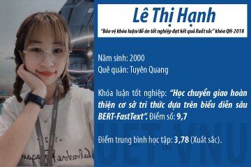 Sau 4 năm học Hệ thống thông tin, Lê Thị Hạnh (Trường Đại học Công nghệ, Đại học Quốc gia Hà Nội) với kết quả học tập Xuất sắc 3,78/4 cùng nhiều thành tích “đáng nể” trong học …