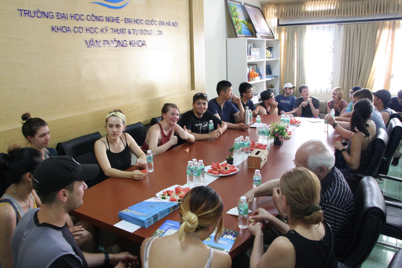 Ngày 04/07, trong khuôn khổ chương trình giao lưu khoa học Trường Đại học Công nghệ đã tiếp đoàn GS. M. Taslim thuộc Đại học Northeastern Boston (Massachusetts, Hoa Kỳ) cùng 18 sinh viên năm cuối sang thăm Trường. Chương trình này giúp sinh viên Mỹ có có điều kiện trao đổi khám phá khoa học, kỹ thuật, văn hóa, cũng như vẻ đẹp tự nhiên của đất nước Việt Nam.