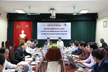 Phát biểu tại buổi làm việc, Giám đốc ĐHQGHN Lê Quân ghi nhận những kết quả đạt được của Trường ĐHCN trong những năm gần đây. Lãnh đạo ĐHQGHN cho rằng, tiềm năng và lợi thế của Trường ĐHCN còn nhiều, các cơ hội để bứt phá cũng đang sẵn sàng chờ đón sự đổi thay trong hoạt động tự chủ đại học và quản trị đại học của Nhà trường.