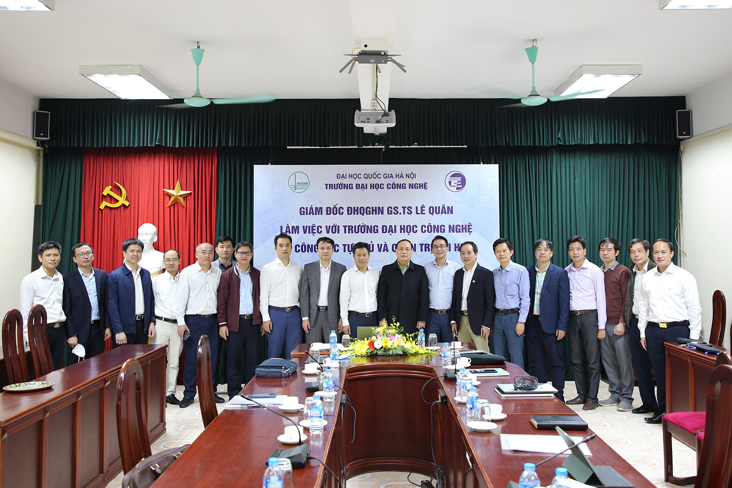 Phát biểu tại buổi làm việc, Giám đốc ĐHQGHN Lê Quân ghi nhận những kết quả đạt được của Trường ĐHCN trong những năm gần đây. Lãnh đạo ĐHQGHN cho rằng, tiềm năng và lợi thế của Trường ĐHCN còn nhiều, các cơ hội để bứt phá cũng đang sẵn sàng chờ đón sự đổi thay trong hoạt động tự chủ đại học và quản trị đại học của Nhà trường.