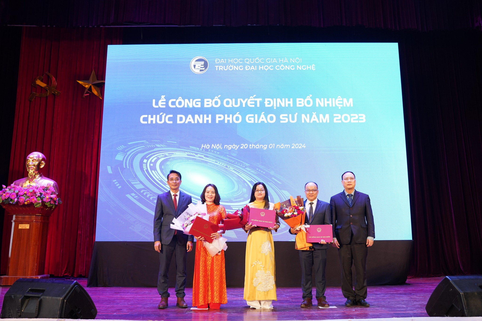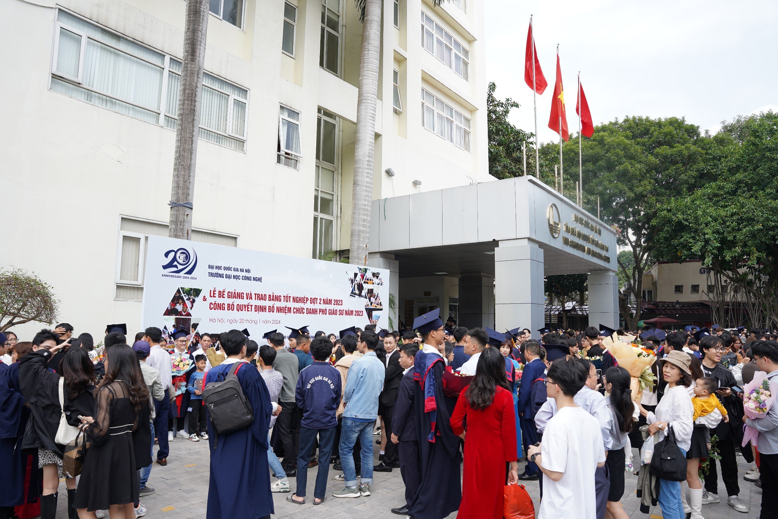 Ngày 20/1/2024, Trường Đại học Công nghệ – ĐHQGHN (UET-VNU) đã long trọng tổ chức Lễ bế giảng và trao bằng tốt nghiệp đợt 2 năm 2023 cho các tân Tiến sĩ, Thạc sĩ, Kỹ sư và Cử nhân, đồng thời công bố các Quyết định bổ nhiệm chức danh Phó Giáo sư năm 2023 tại Hội trường Nguyễn Văn Đạo – ĐHQGHN.