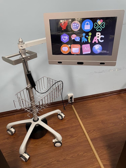 PGS.TS Lê Thanh Hà bên sản phẩm hỗ trợ bệnh nhân giao tiếp. Ảnh: NVCC