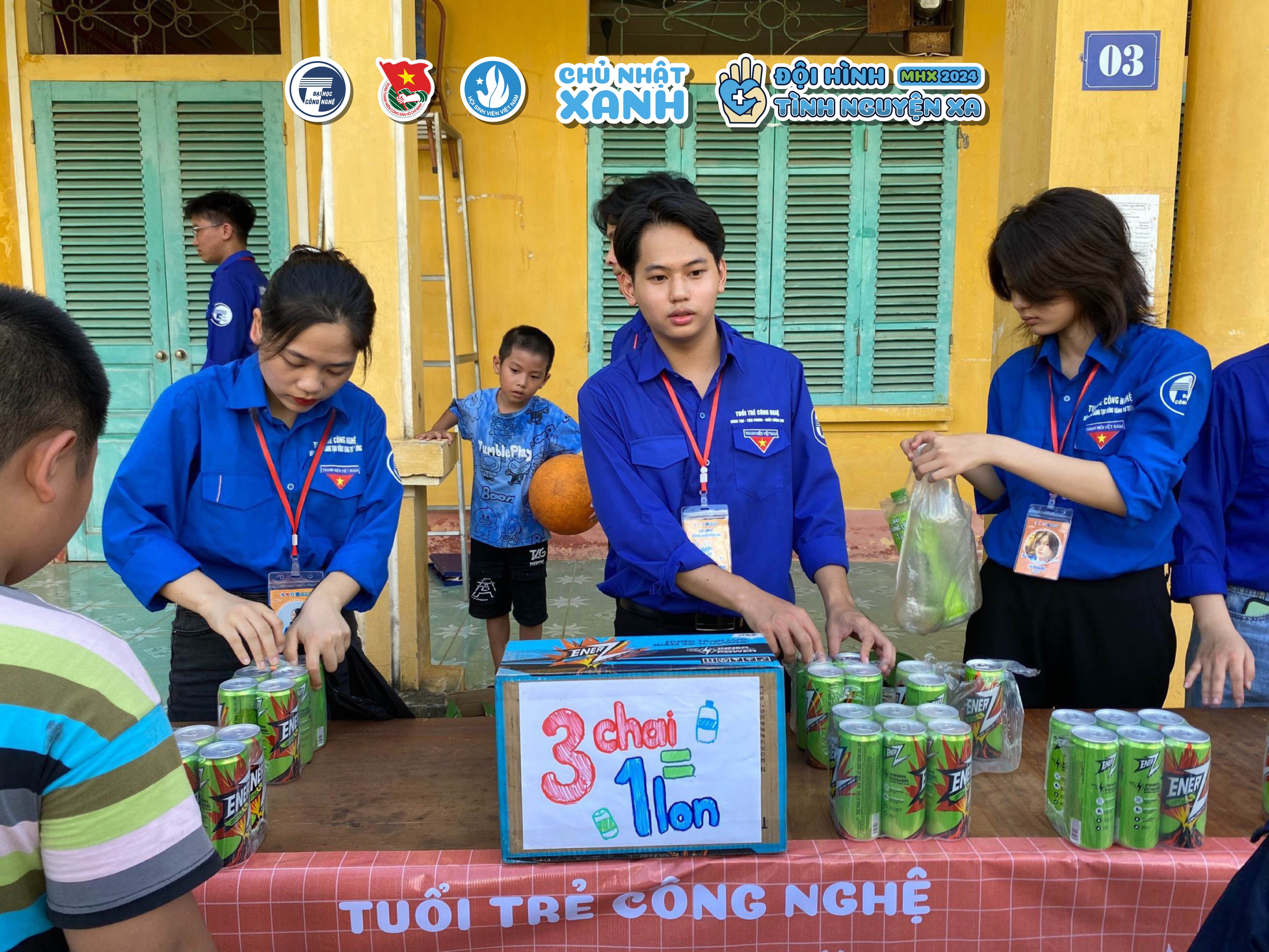 Ngoài ra, hưởng ứng tinh thần “Ngày Chủ nhật xanh”, đội tình nguyện xa Trường Đại học Công nghệ đã phối hợp cùng người dân thị trấn Na Hang và các cán bộ địa phương tổ chức hoạt động dọn dẹp vườn trường và khu vực xung quanh Trường mầm non Hoa Mai. Bên cạnh đó, vào buổi chiều cùng ngày, hoạt động đổi 3 chai nhựa lấy 1 lon nước ngọt đã nhận được sự hưởng ứng nhiệt tình của các em nhỏ với hàng trăm chai nhựa rỗng được thu gom.