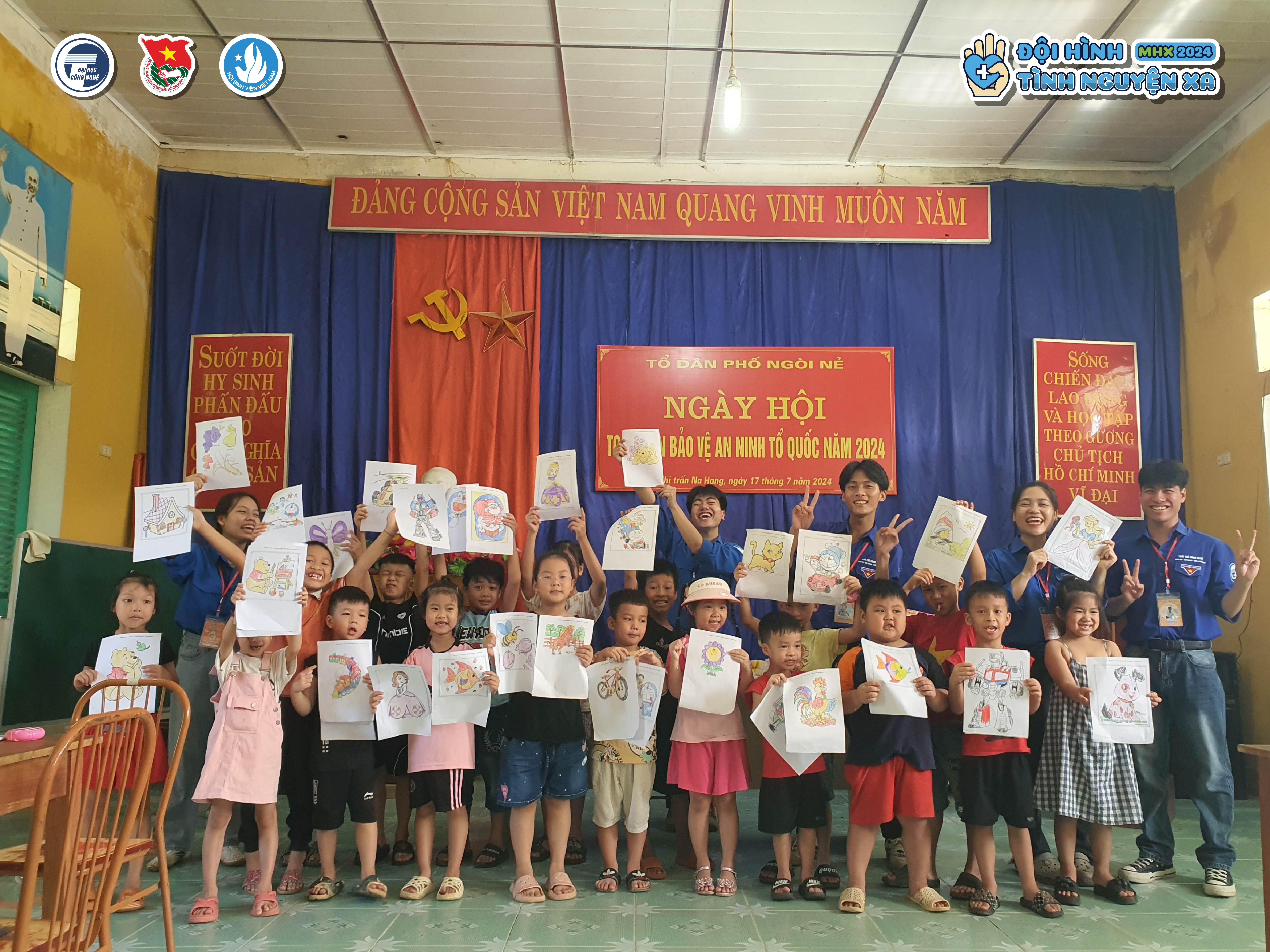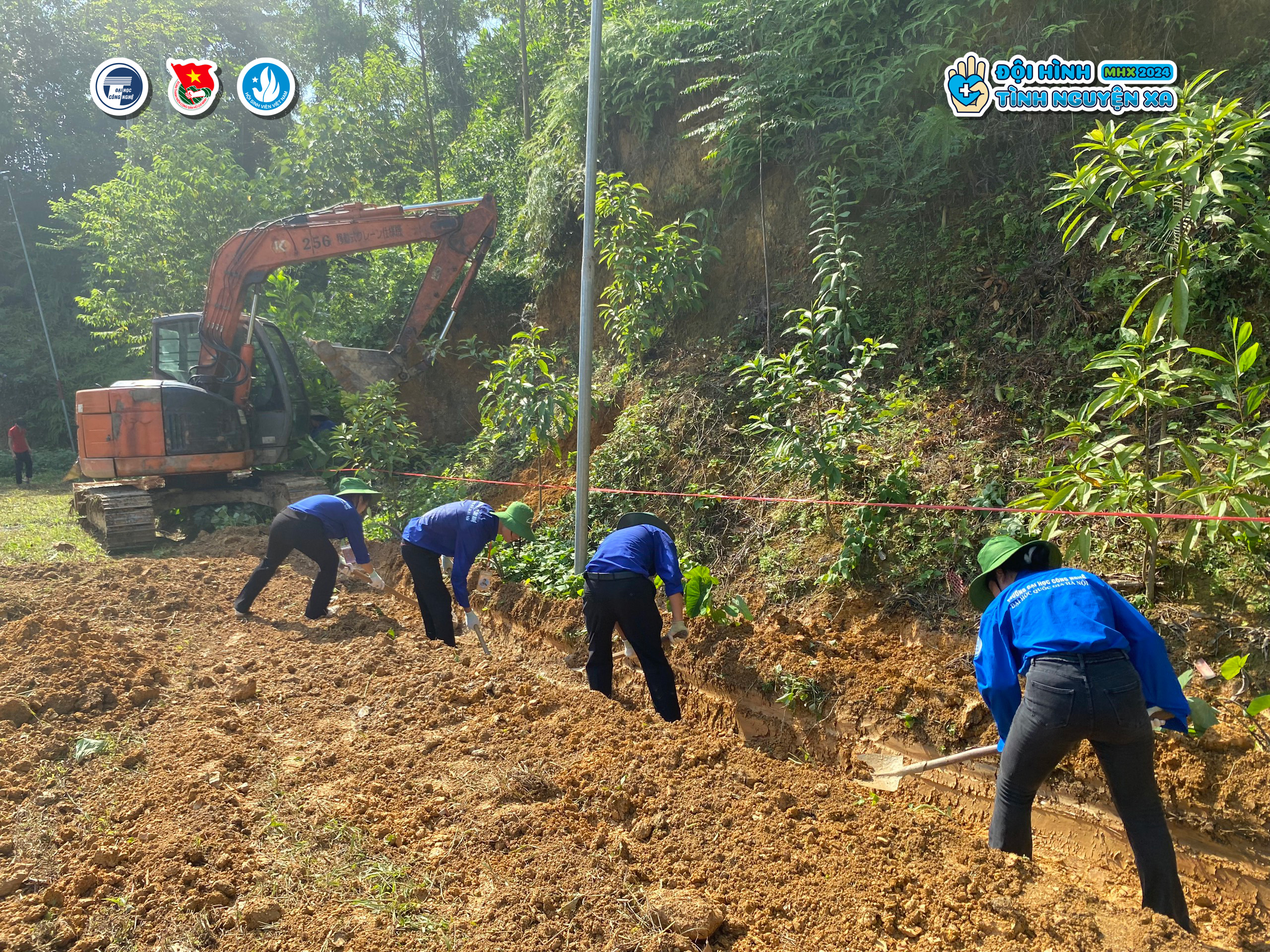 Đội hình Tình nguyện xa còn phối hợp với người dân và Đoàn Thanh niên thị trấn Na Hang thực hiện hai Công trình thanh niên ý nghĩa là “Thắp sáng đường quê” và “Sân chơi cho trẻ em”. Đội tình nguyện đã lắp đặt 9 cột đèn năng lượng mặt trời dọc theo con đường Tân Trào và thực hiện dự án cải tạo và xây dựng khu vui chơi tại trường Mầm non Hoa Mai, điểm trường Ngòi Nẻ. Các bạn tình nguyện viên đã sơn lại cơ sở vật chất và lát xi măng mới cho sân, mang lại diện mạo tươi mới và an toàn hơn cho khu vui chơi của các em nhỏ. Hình ảnh những chiếc áo xanh thấm đẫm mồ hôi nhưng luôn nở nụ cười trở thành biểu tượng đẹp, lan tỏa tinh thần nhiệt huyết và trách nhiệm của tuổi trẻ.