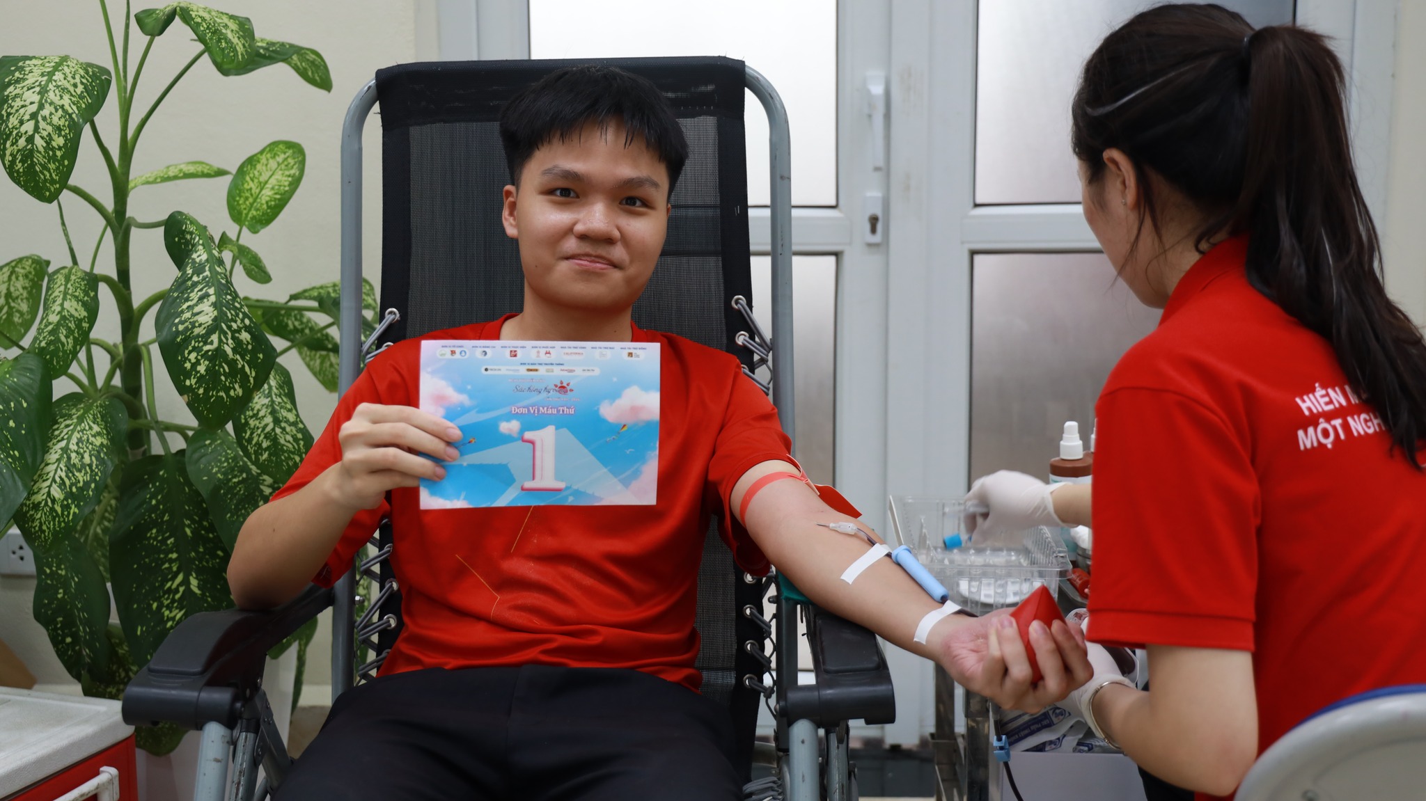 Gặp gỡ sinh viên Trần Hồng Sơn (khóa QH-2023, ngành Công nghệ thông tin định hướng thị trường Nhật Bản) trong lần đầu tiên đi hiến máu, Hồng Sơn hào hứng chia sẻ: “Trước giờ em vẫn luôn ngưỡng mộ những anh chị công tác trong các hoạt động cộng đồng, đặc biệt là các chương trình liên quan đến hiến máu tình nguyện. Em cảm thấy đây là hành động hết sức thiết thực và ý nghĩa đối với những người cần giúp đỡ. Vì là lần đầu tiên nên em cảm thấy hồi hộp, nhưng vô cùng hạnh phúc bởi sau nhiều lần mong ước em đã có cơ hội được sẻ chia những giọt máu giúp ích cho đời”.