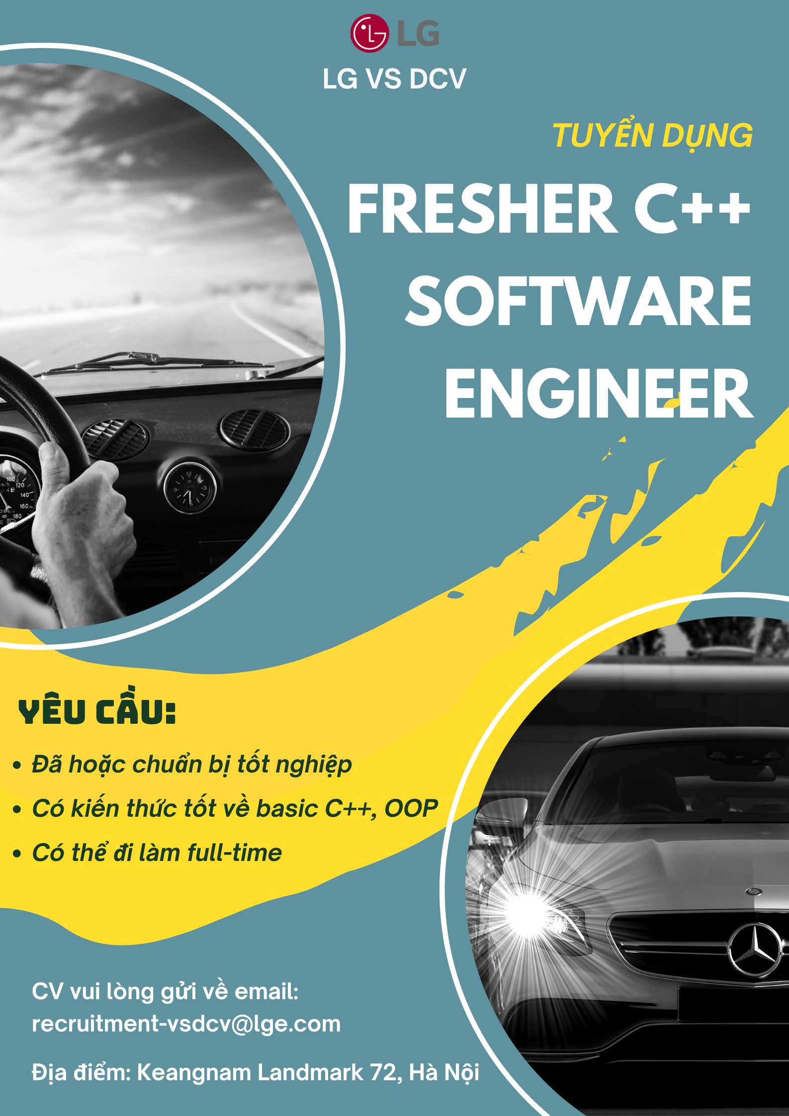 Tuyển dụng “Fresher C++ Software Engineer” – Trung tâm Phát triển Giải pháp về linh kiện cho xe hơi LG VS DCV