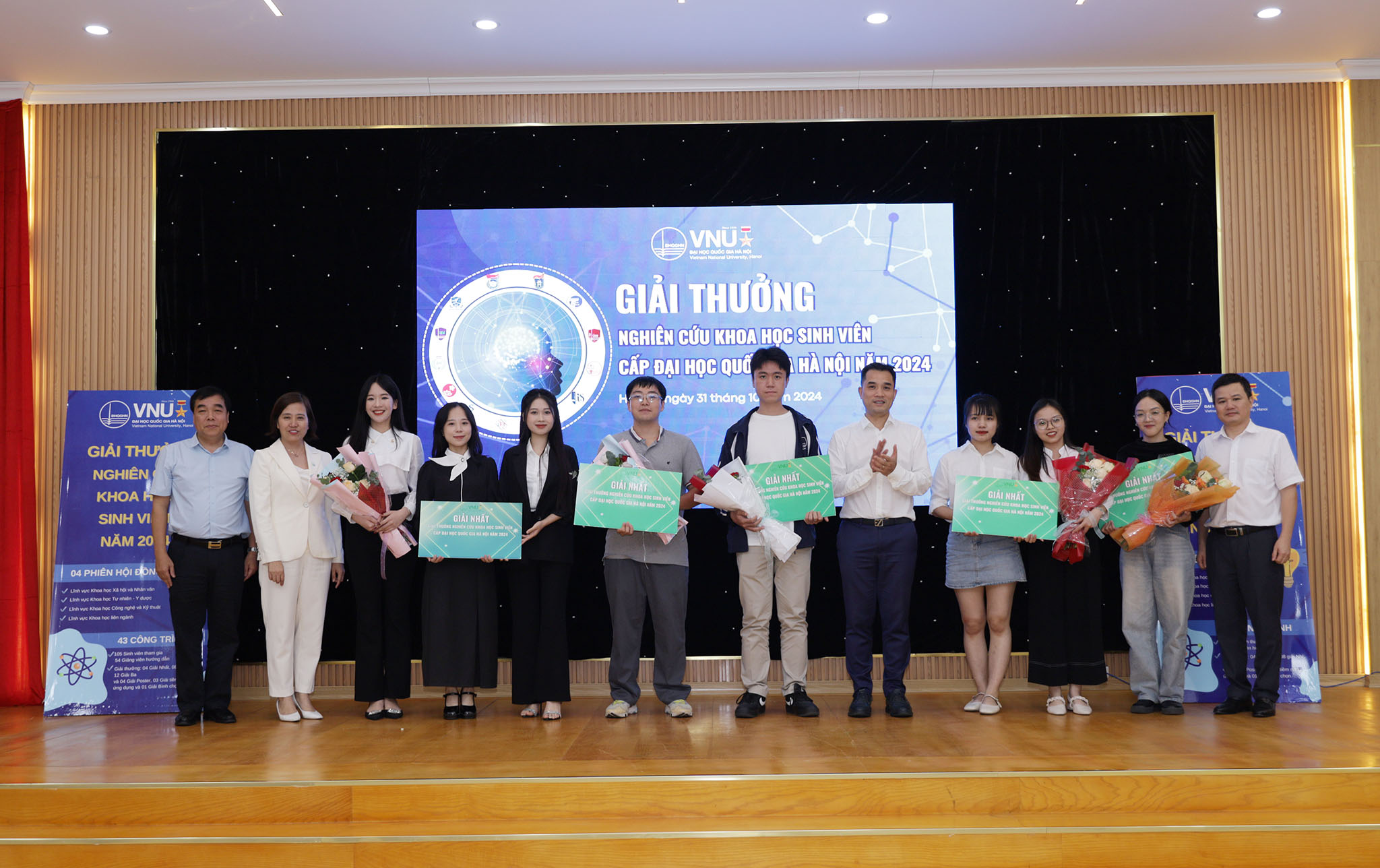 Đề tài của sinh viên Lê Việt Quân (đứng thứ sáu, bên phải sang), QH-2020, khoa Công nghệ thông tin đạt giải Nhất giải thưởng nghiên cứu khoa học sinh viên cấp ĐHQGHN