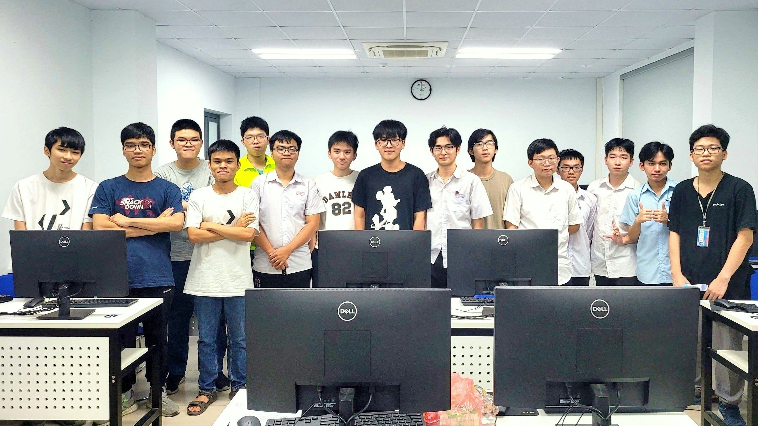 Đội tuyển Việt Nam dự thi Olympic Tin học Châu Á Thái Bình Dương làm quen với hệ thống bằng việc thi thử tại phòng máy của Trường ĐH Công nghệ vào ngày 19/5/2023