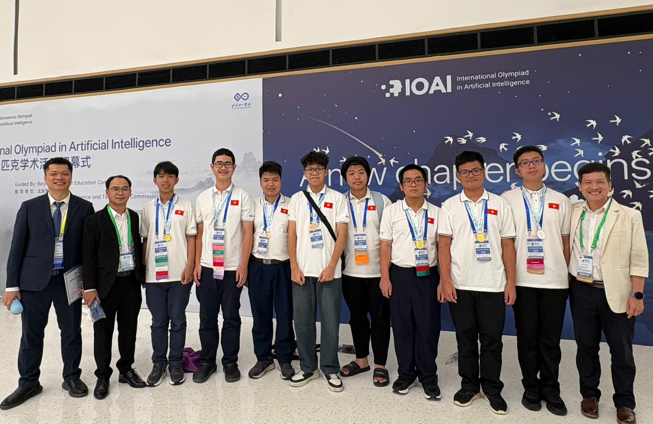 Bộ Giáo dục và Đào tạo (GD&ĐT) vừa thông tin về kết quả chính thức của Đội tuyển quốc gia Việt Nam dự thi Olympic Trí tuệ nhân tạo quốc tế (IOAI) năm 2025 do Trung Quốc đăng cai tổ chức từ ngày 2/8 đến ngày 8/8/2025. Theo đó, 08 học sinh Việt Nam giành được 3 Huy chương Vàng, 1 Huy chương Bạc, 3 Huy chương Đồng và 1 Giải Khuyến khích. Với những thành tích này, đoàn Việt Nam đứng trong nhóm 4 quốc gia và vùng lãnh thổ có thành tích toàn đoàn cao nhất.