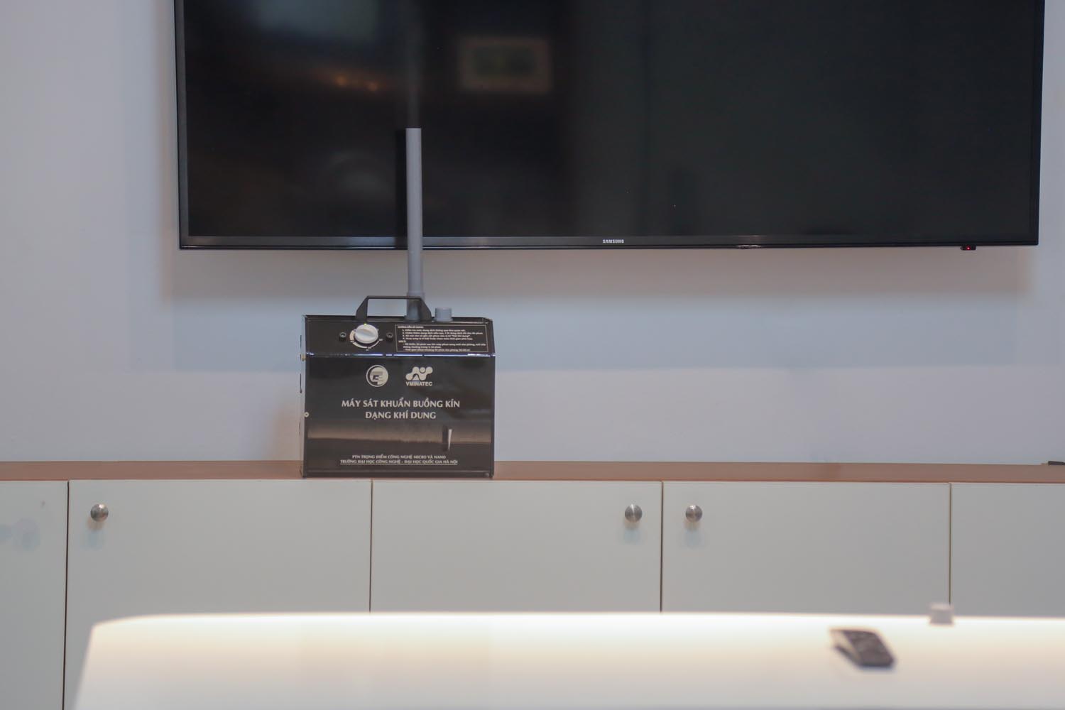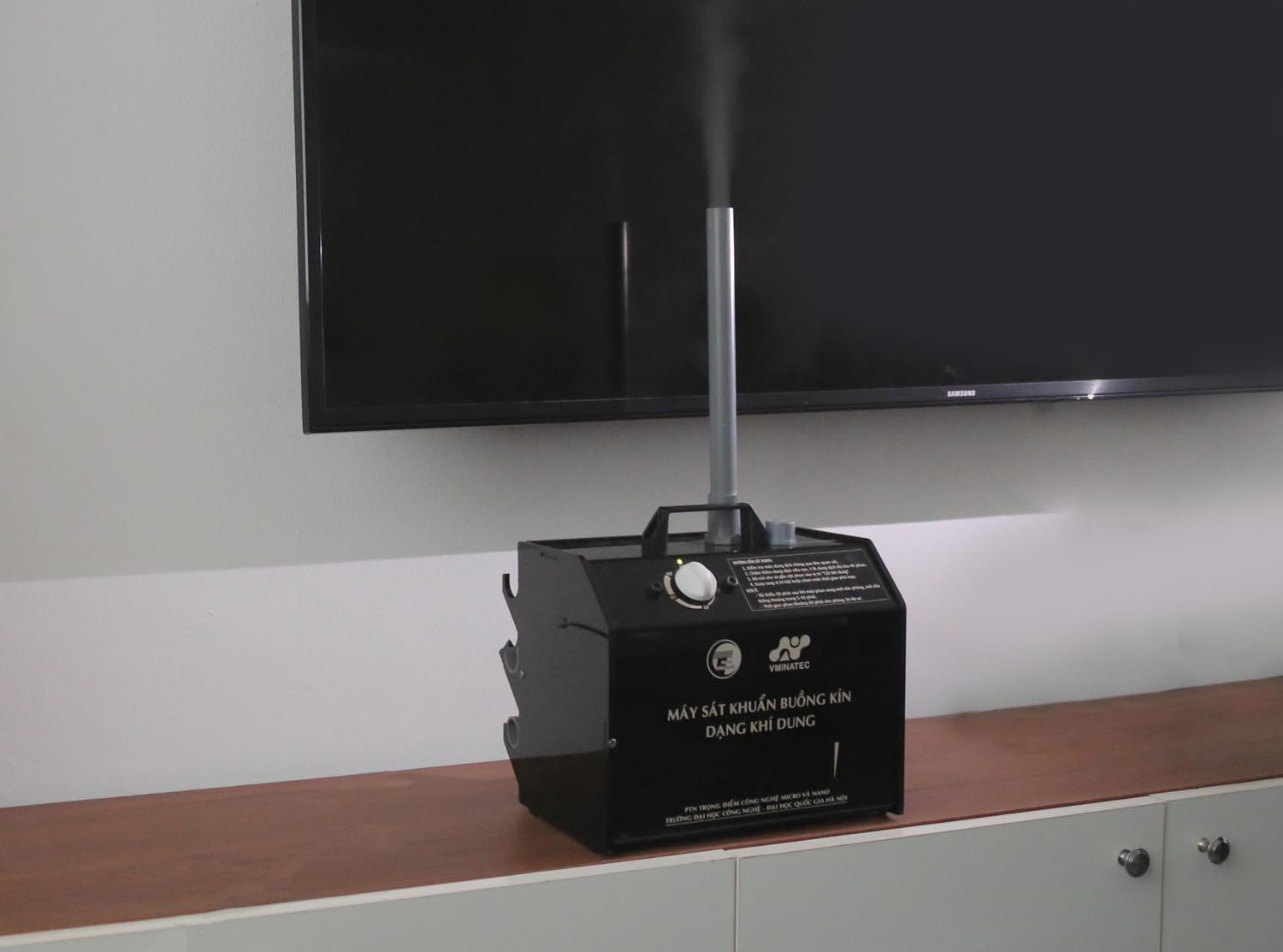 Máy sát khuẩn buồng kín được chế tạo để hạn chế các tác động nói trên. Dung dịch cồn dưới tác dụng của sóng siêu âm sẽ tạo thành khí dung với các hạt có kích thước chỉ cỡ micro-mét, dễ dàng phân tán trong không gian và diệt khuẩn hiệu quả. Cồn có tác dụng khử khuẩn mà không gây hại lên các thiết bị máy móc trong phòng. Máy có tích hợp bộ đếm thời gian cho phép người dùng có thể phun theo thời gian đặt trước phù hợp với kích thước của phòng mà không cần phải trực tiếp tham gia vào quá trình khử khuẩn, do đó không gây hại tới sức khỏe.